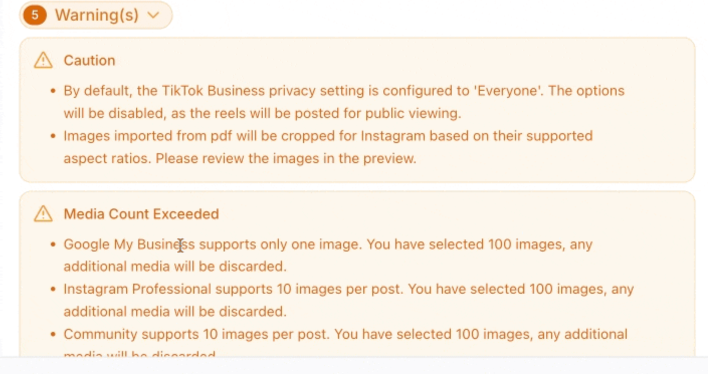 Previously, no error message was shown when a GMB post with video failed to create. A proper error message is now displayed, preventing silent failures.