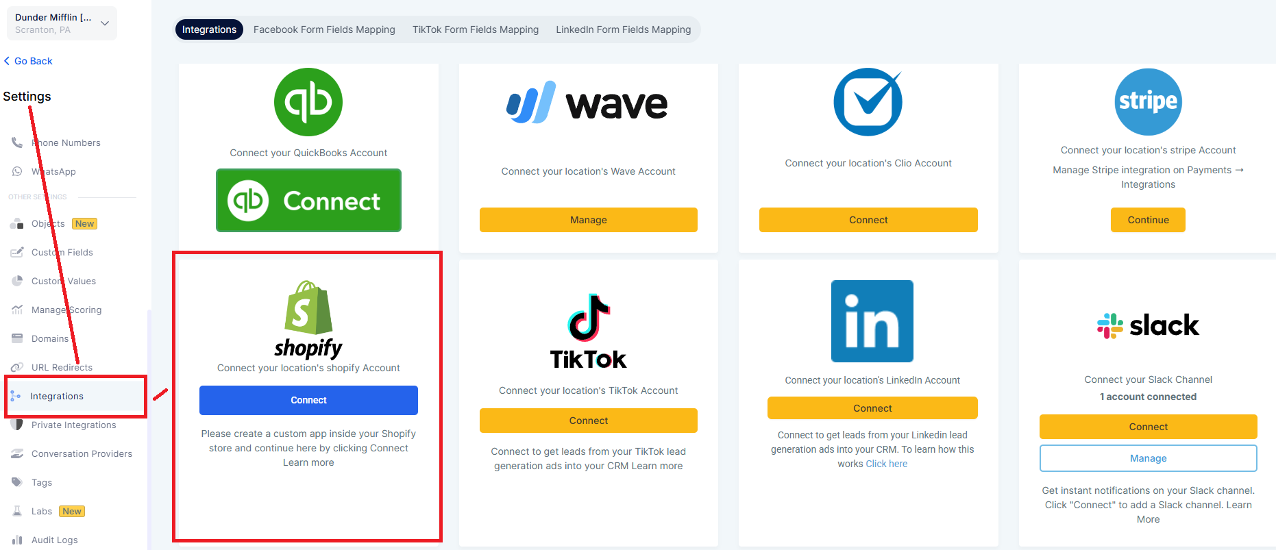 Access the Integration: Shopify integration can be found within the account at: Settings > Integration > Shopify.