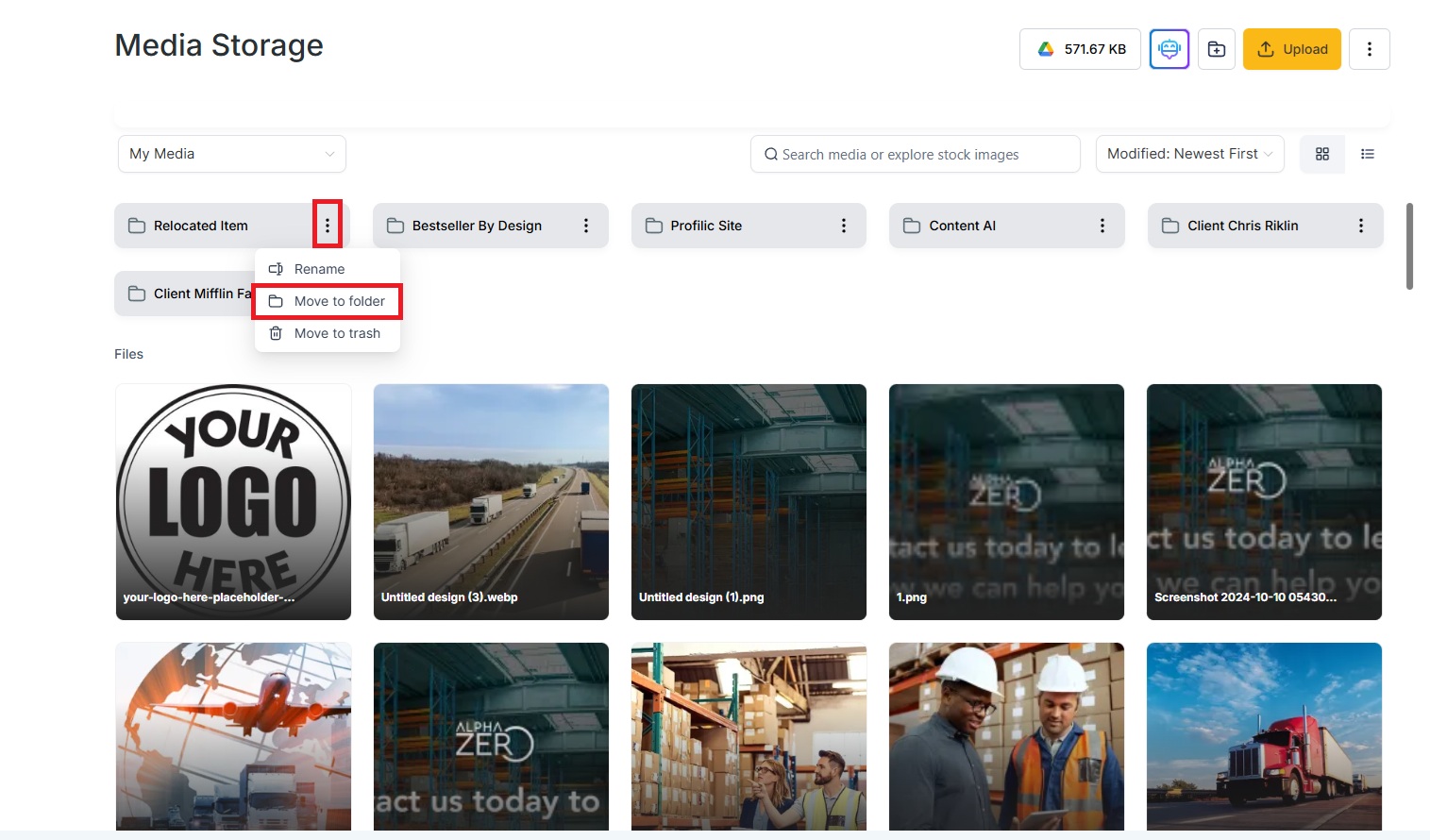 Locate the Folder – Find the folder you want to move in your Media Storage.