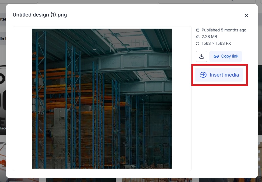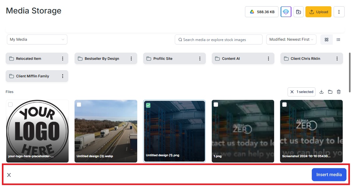 When a single file is selected, an "Insert Media" CTA now appears for faster action.