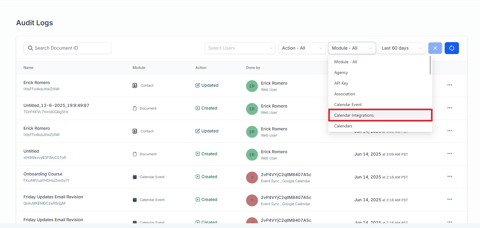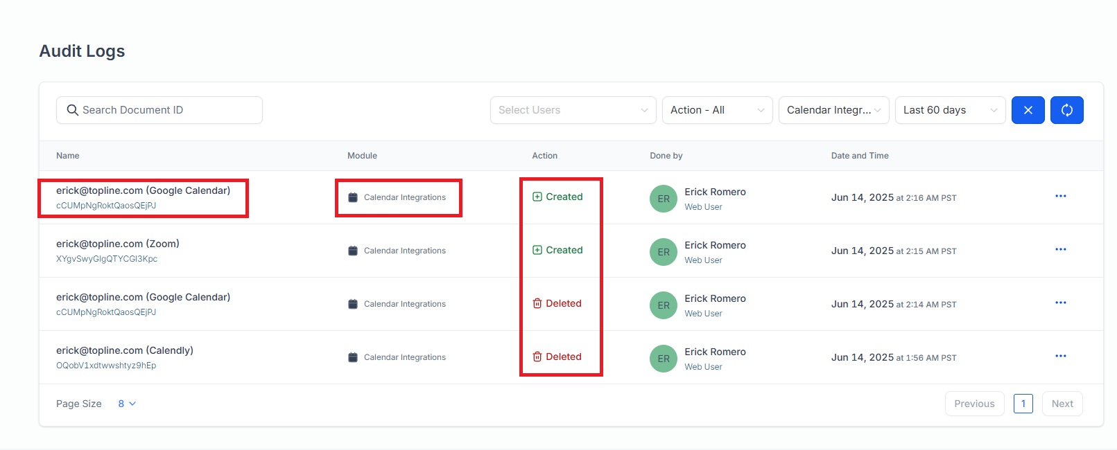 Gain clear visibility into changes made to calendar and video conferencing integrations