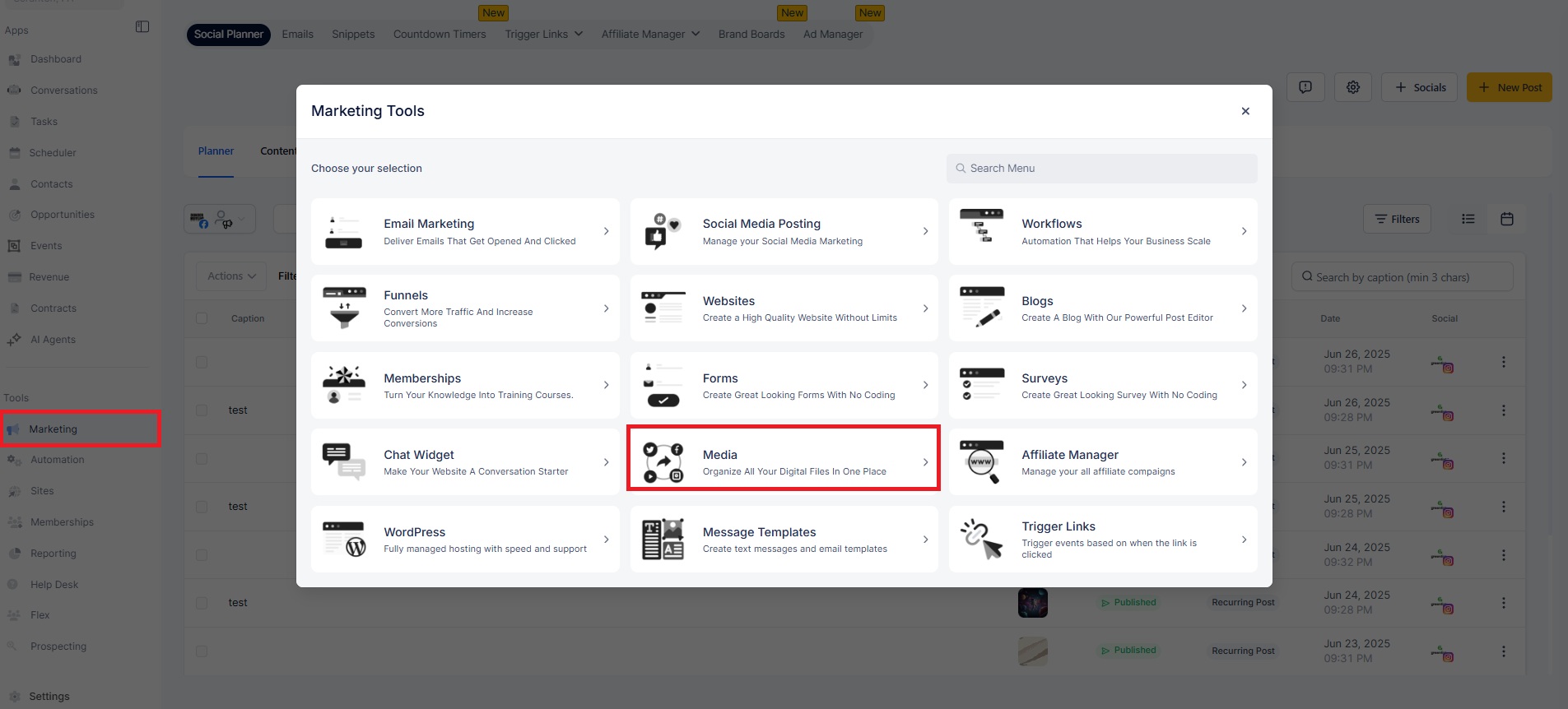Navigate to Marketing > Media