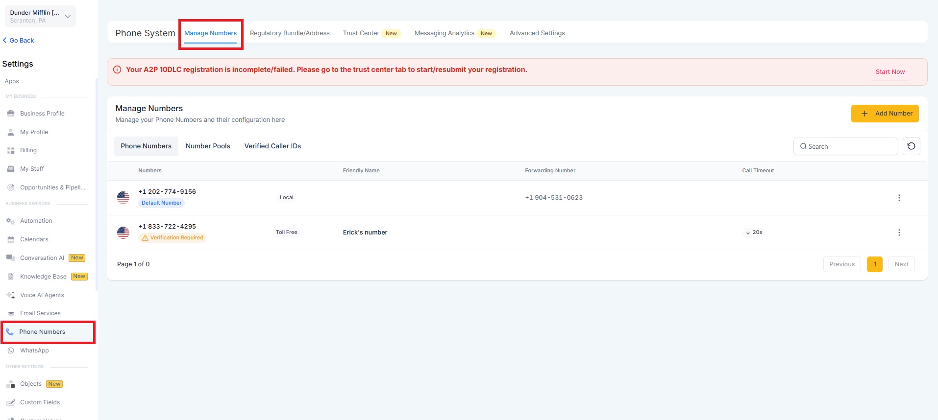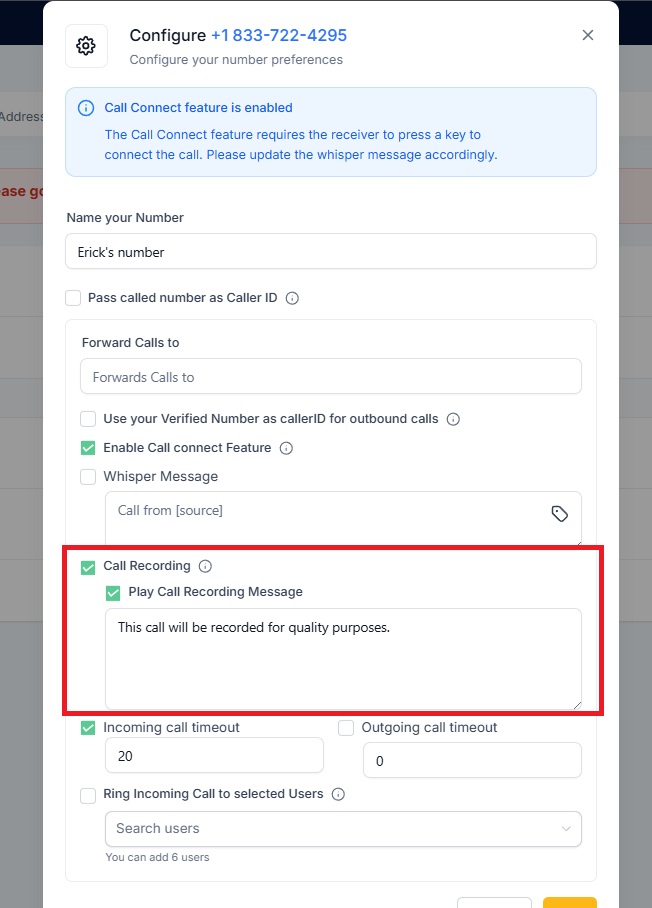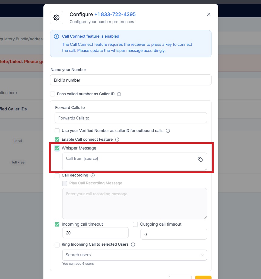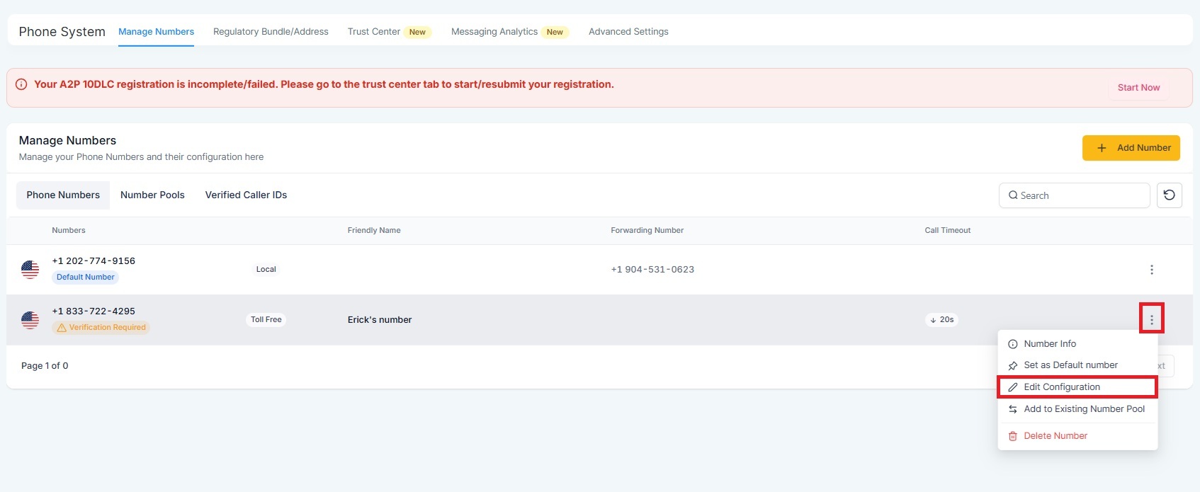 Select any phone numbers > Click on the 3 dots > Edit Configuration.