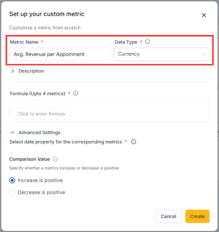 Create a Custom Metric and pick From scratch or Clone.