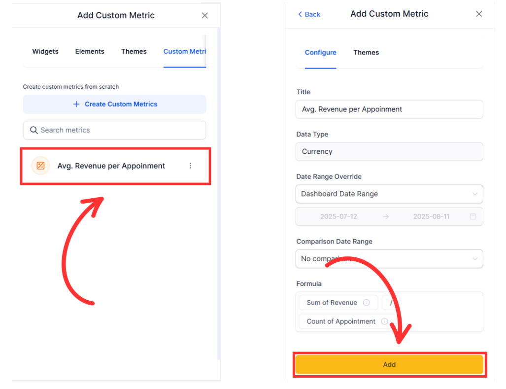Click Add widget and choose the Custom metric tab.