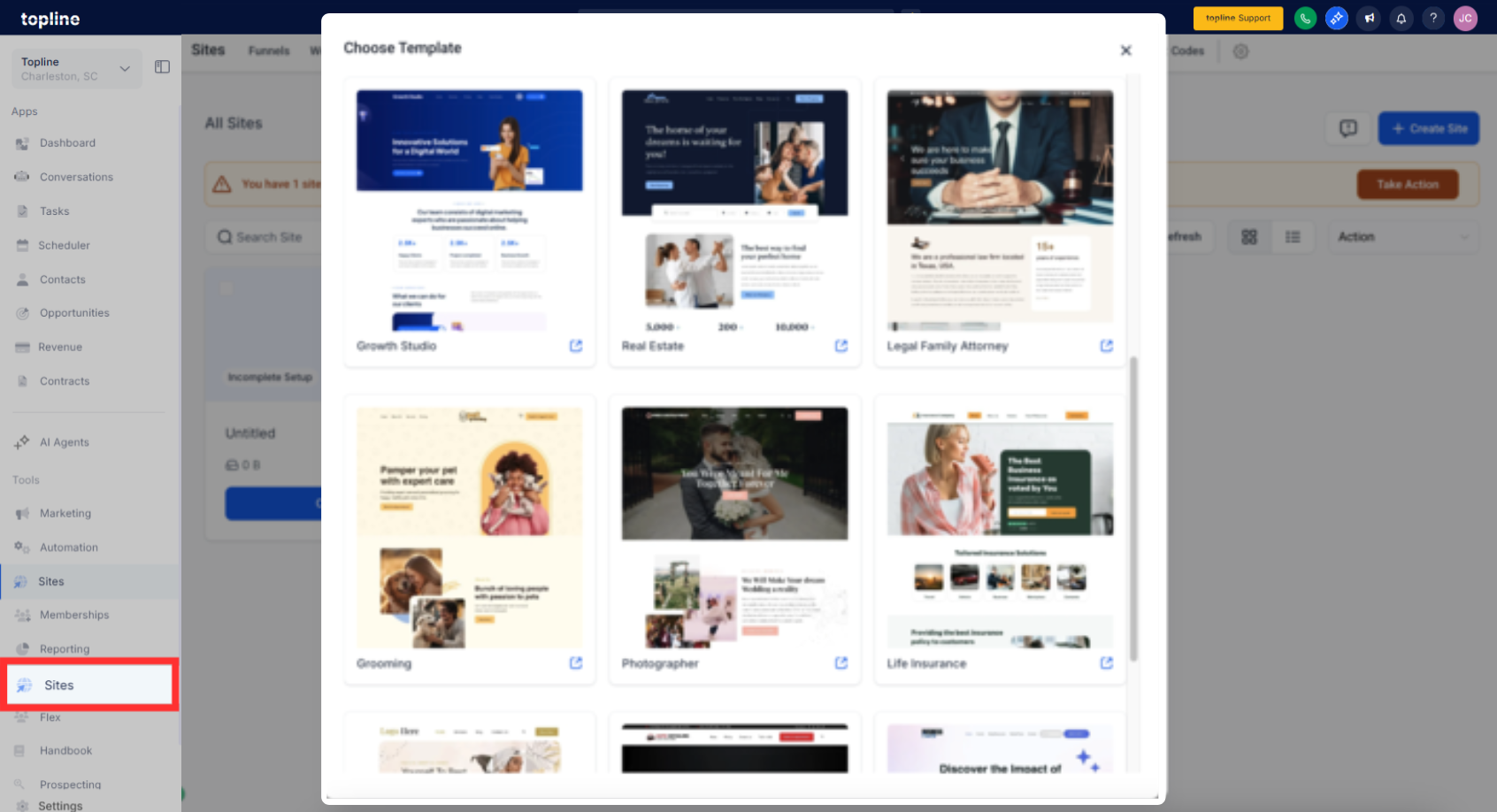 Nine fresh templates are now available in the WordPress site creator, providing Topline OS accounts with more choices for quick, professional launches. Select a design that suits your niche, preview it, and begin building—branding, pages, and content are all fully editable.