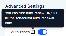 Auto‑Renew toggle, you can switch on/off before the renewal date