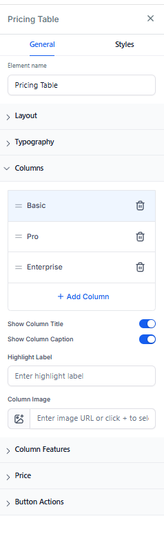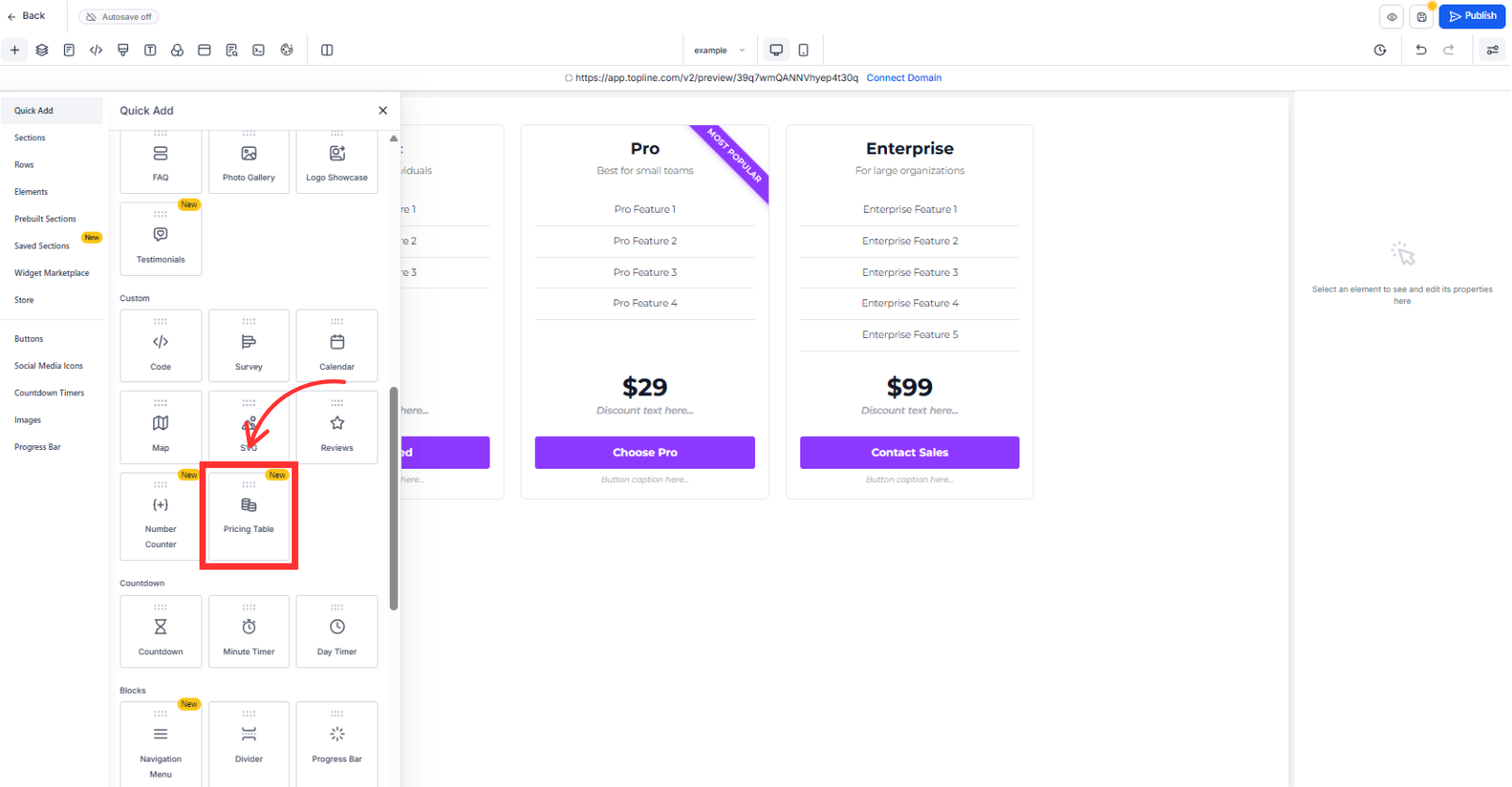 One Pricing Table element that works the same across Funnels, Websites, Blogs, and Stores