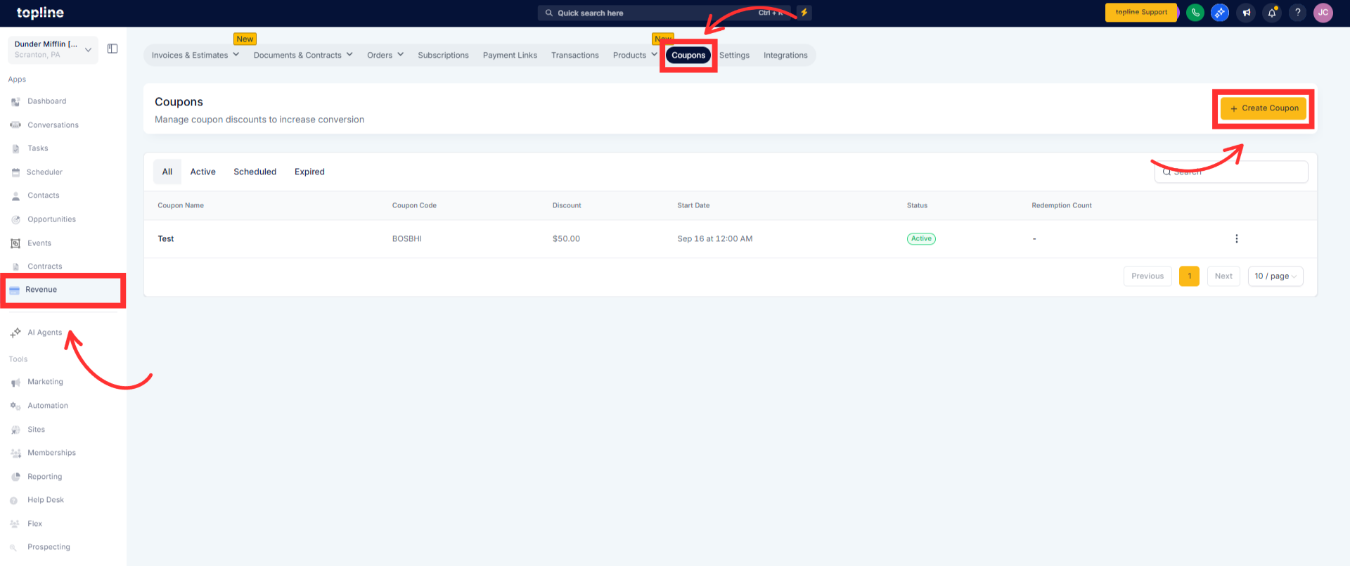 In Revenue → Coupons or Payments → Coupons. Edit discount type, dates, and limits there.