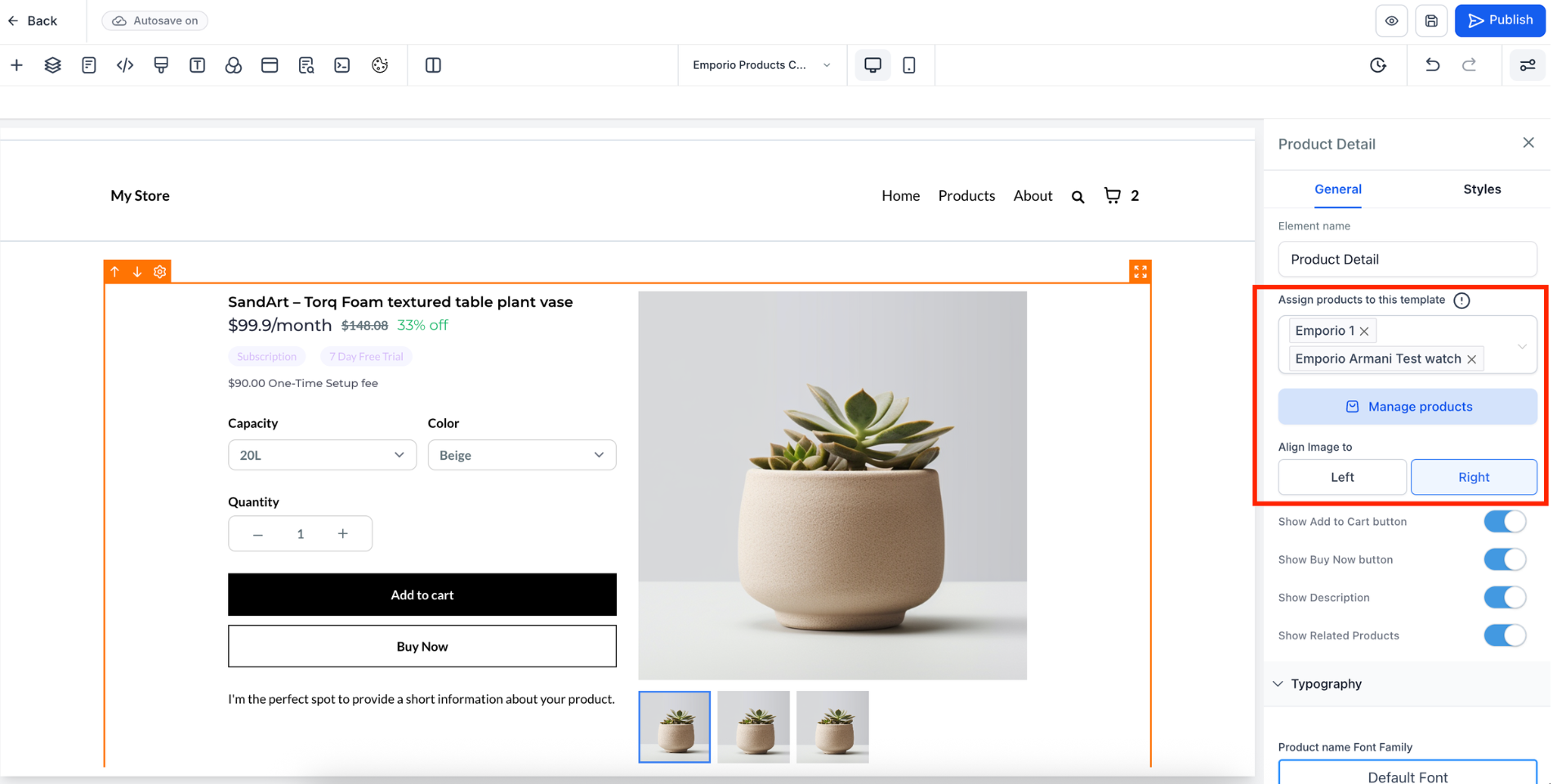 Product Details page templates you can design in the builder