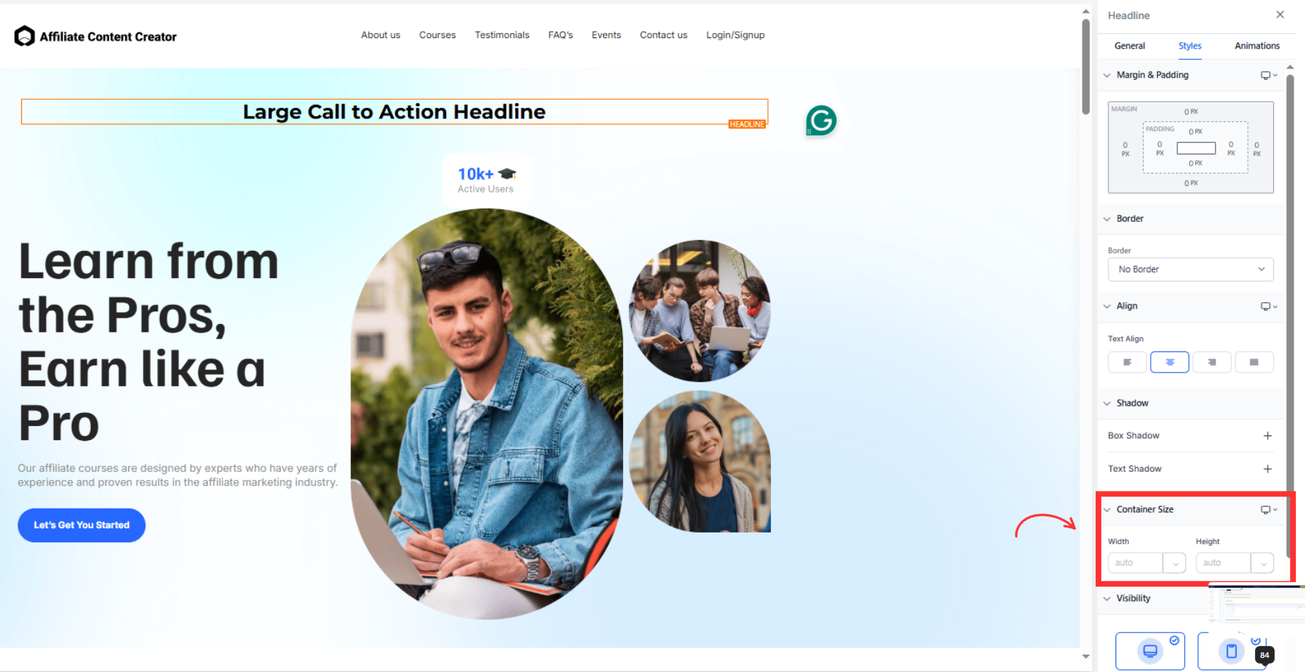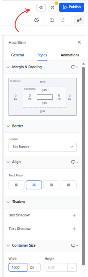 Topline OS adds height and width controls to the Page Builder. You can set fixed, auto, or responsive sizes for many elements, fine tune min and max limits, and keep sections aligned without custom CSS.