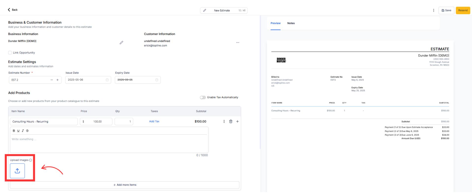 Topline OS now lets you attach photos to estimates. Add images per line item or to the estimate body, arrange them for clarity, and send a visual, professional estimate that speeds up approvals.