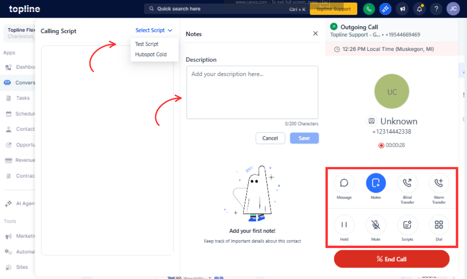 Topline OS fixes an issue that blocked note taking during active calls. The notes field stays editable, autosaves reliably, and no longer loses focus when call status updates or UI panels refresh.