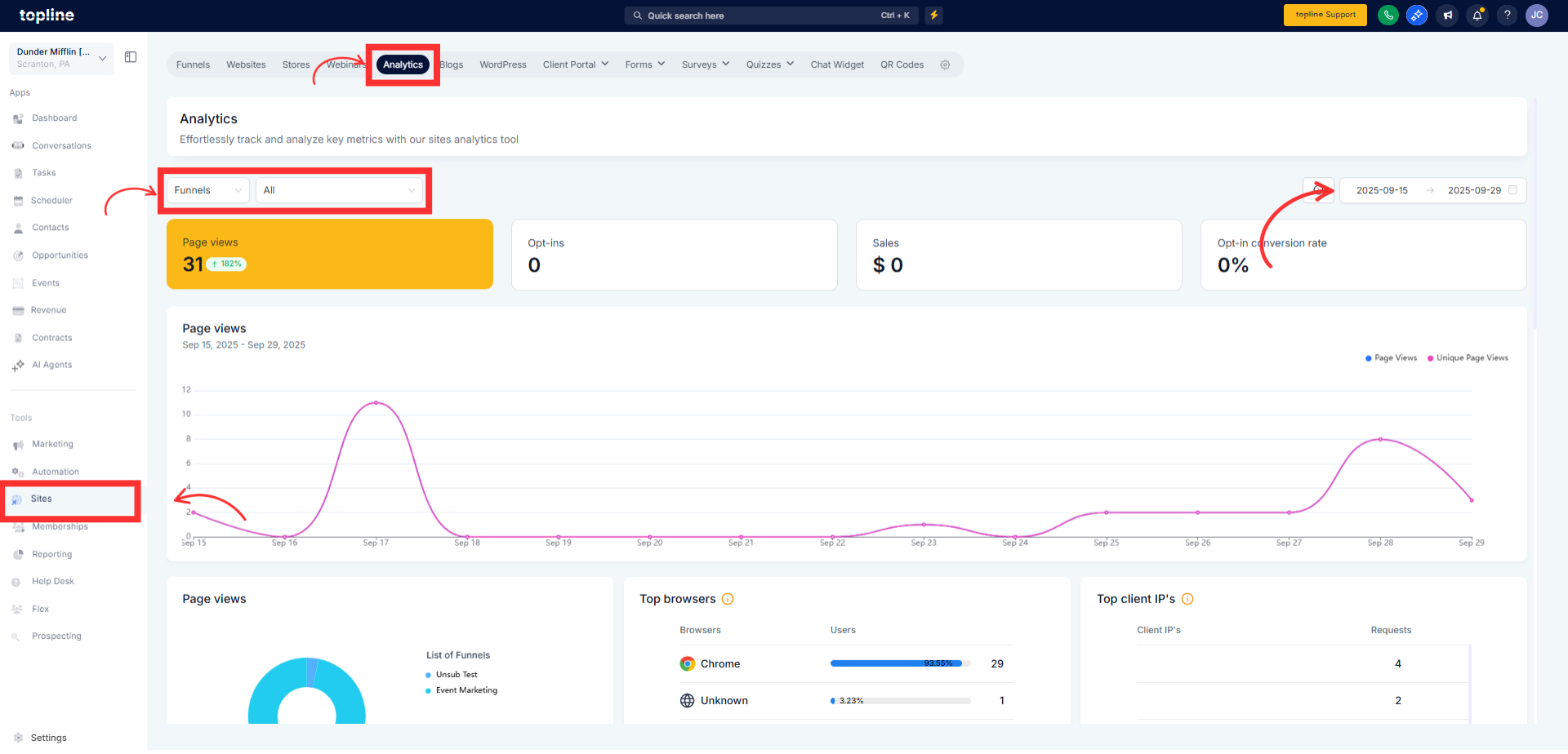 Topline OS now features Traffic Source Analytics, allowing you to compare performance by source in one place. Filter by date and campaign tags, review key metrics, drill into source details, and export insights to guide budget and content decisions.