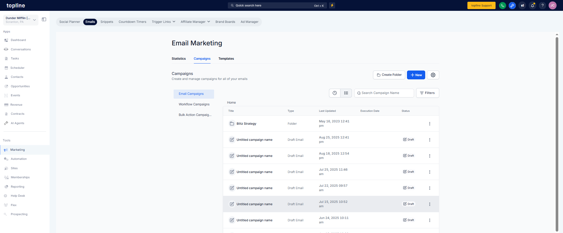 Topline OS adds Smart Send recommendations for Email Marketing. Based on historical engagement, time zones, and recent performance, the composer suggests the best send window for your selected audience. Use it to schedule campaigns at peak times automatically or fine-tune with your own constraints.
