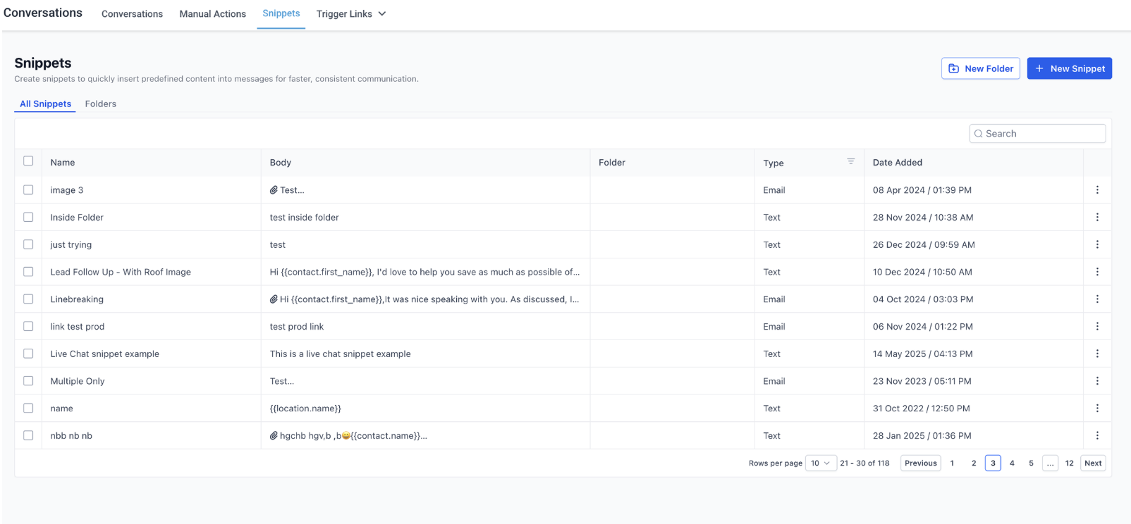 Open Conversations and navigate to Snippets.