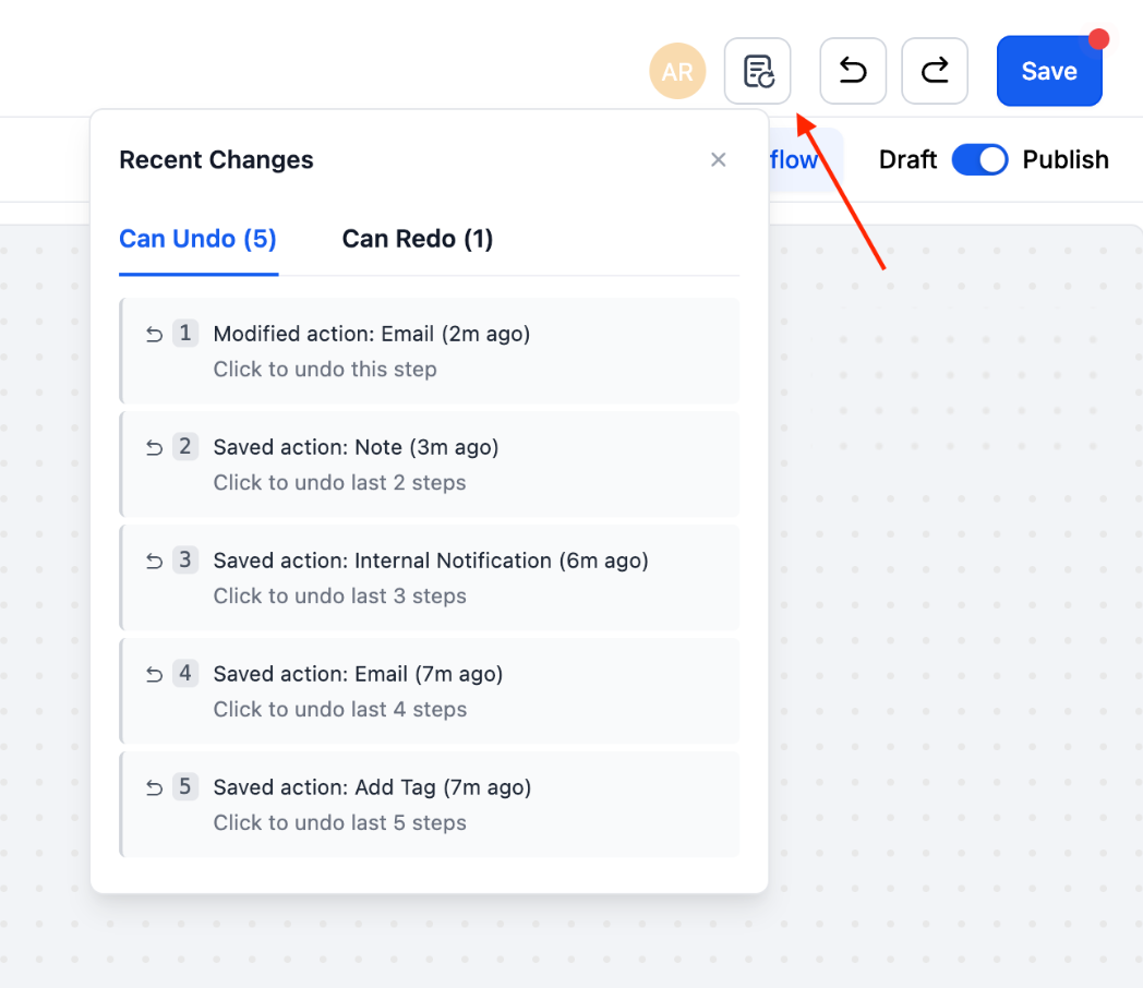 The Workflow Builder now supports undo and redo actions along with a detailed change history. Quickly revert mistakes, compare recent edits, and restore prior states without rebuilding. Keyboard shortcuts speed up power users, while history logs provide accountability across teams.