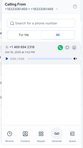 The Dialer gains a Voicemail tab that centralizes message review and response. Expect quick playback, readable transcriptions, filters for status and assignee, bulk actions, and clear links to the contact record. Teams can triage, assign, and resolve voicemails with fewer clicks and better accountability.