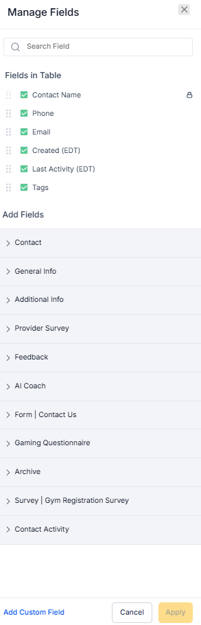Customize columns by reordering, resizing, or hiding fields, then save as a view.