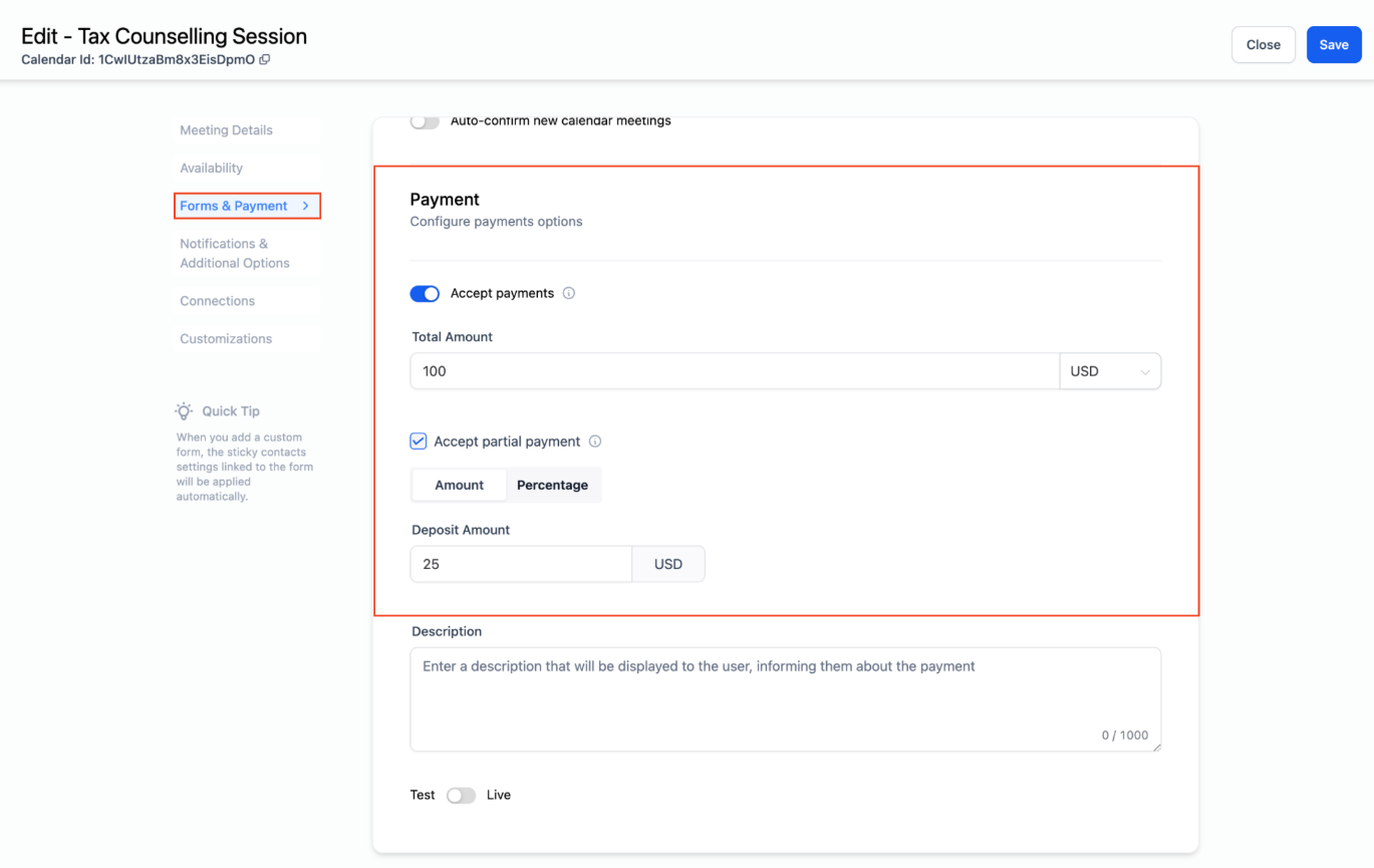 Can I require a deposit instead of full payment?