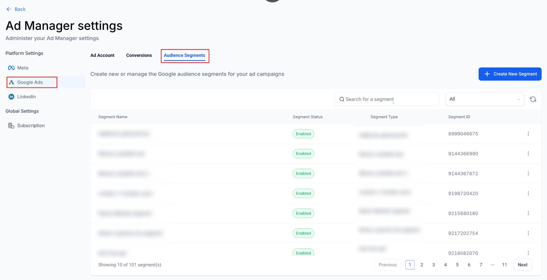 Audience Segments in Ad Manager let you create granular groups from contacts, events, and web traffic, then sync them to Google Ads for targeting and exclusions. Support includes Customer Match style lists, website based segments, lookalike expansion where available, size thresholds, and scheduled or realtime refresh for consistent performance.