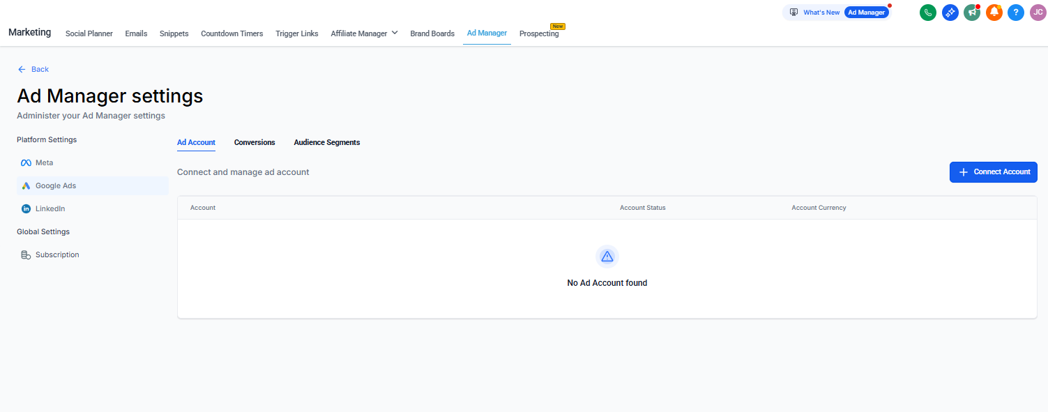 You can connect Google Ads Open Ad Manager settings and connect your Google Ads account with the required permissions.