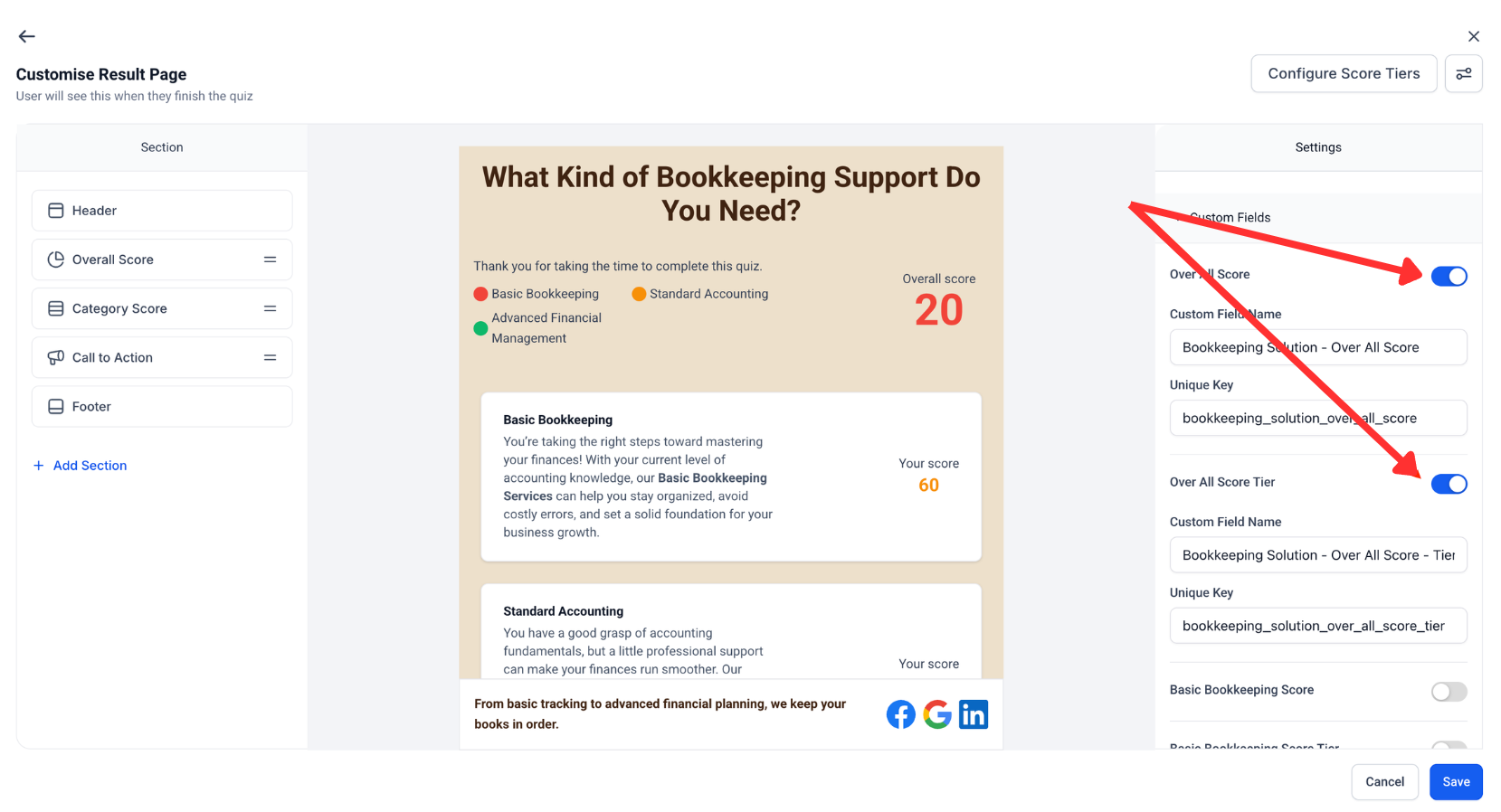 Map an overall score to a numeric field and set score bands for automation triggers