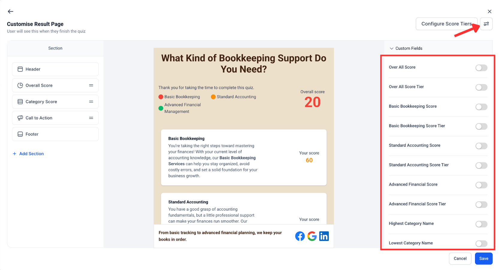 You can now connect quiz questions and outcomes to CRM custom fields. Map single choice, multiple choice, numeric, and outcome scores to fields on contact or company records. This enables targeted messaging, smart pipelines, and analytics that reflect real quiz insights.