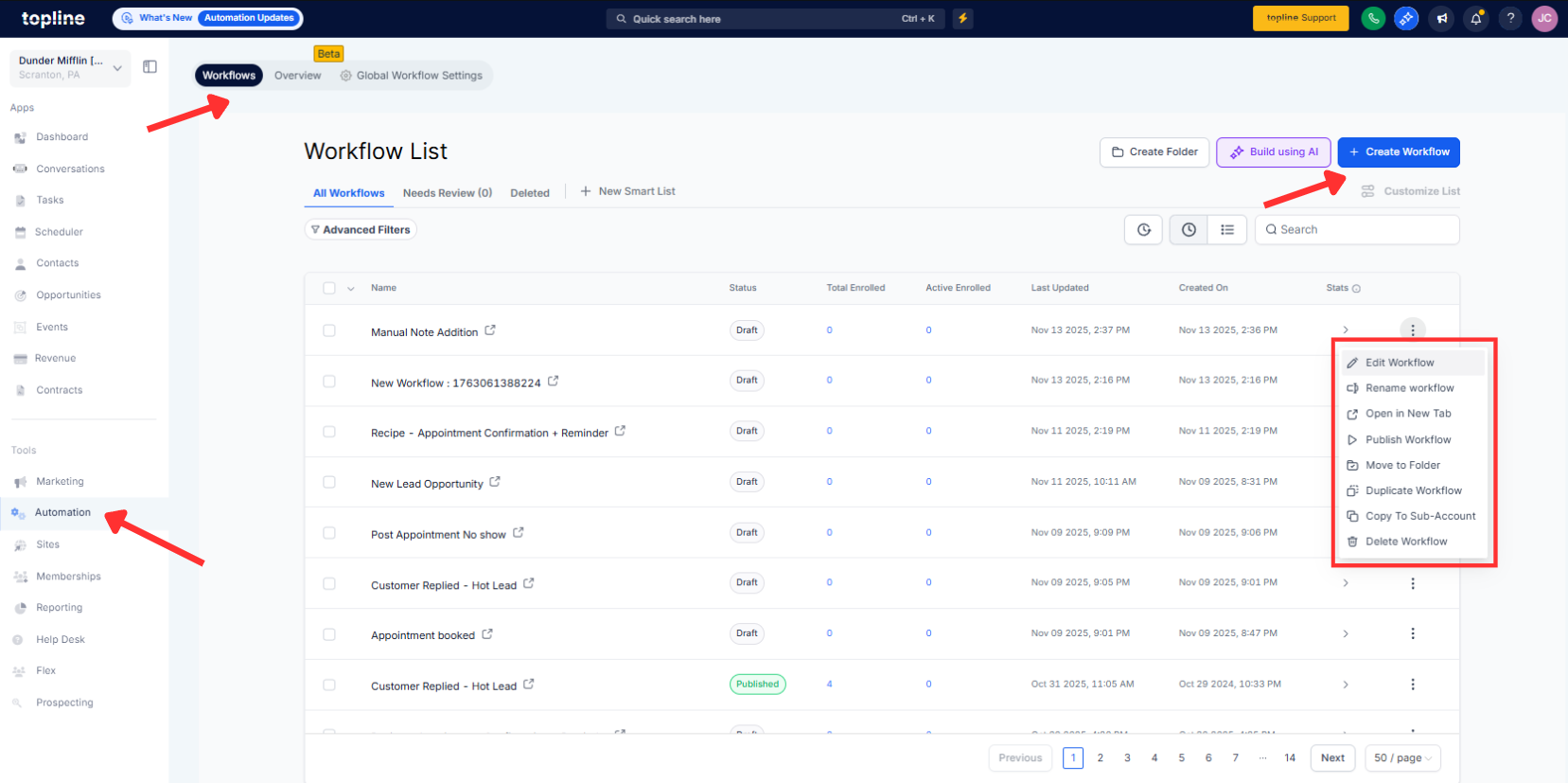 Go to Sites, open any workflow in the Workflow Builder, or edit it.