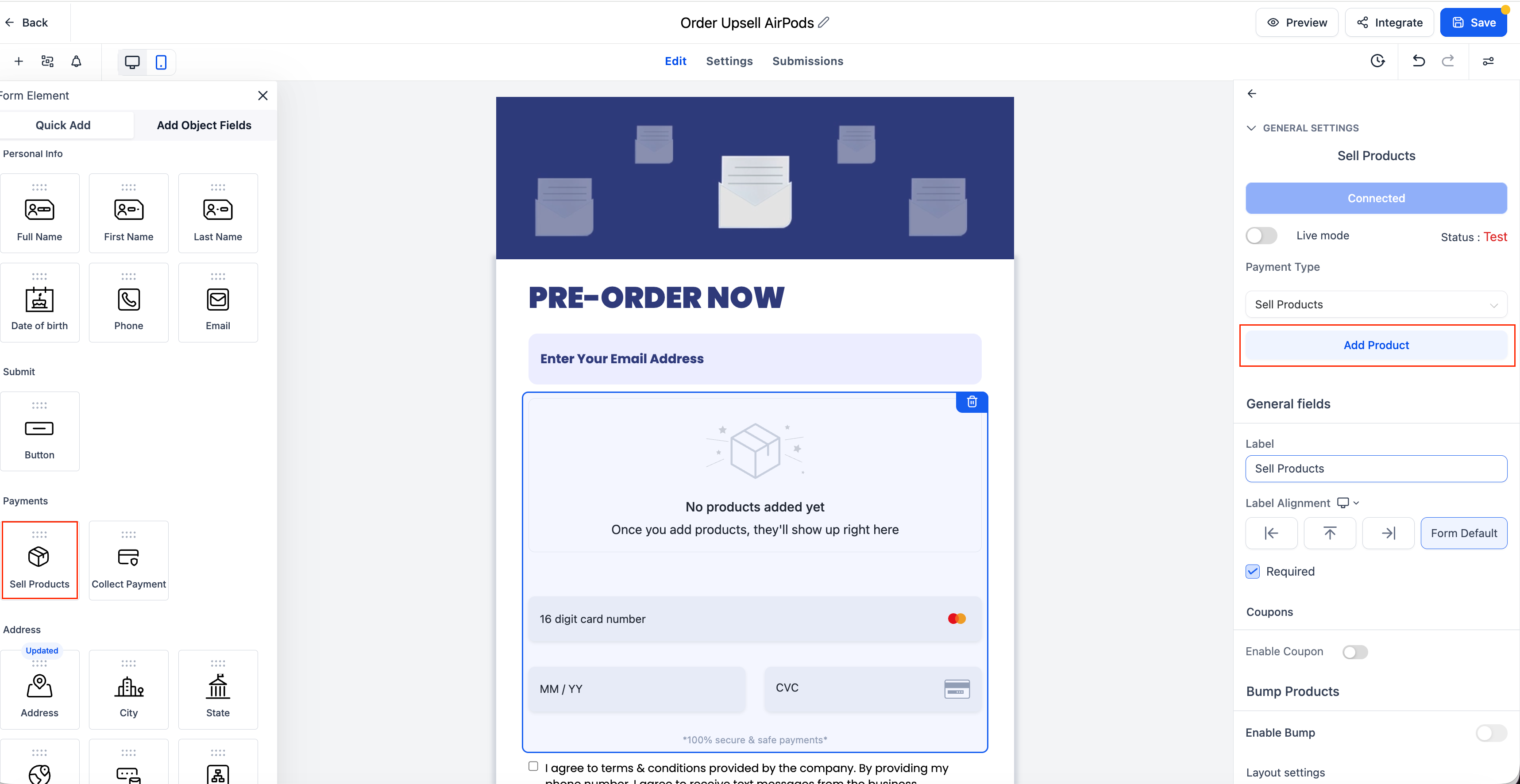 Forms and Surveys now support built in order upsells. Add post submit or in flow offers tied to the original purchase, prefill customer details, and capture payment in a single session. Configure rules, pricing, and limits; track take rates and revenue; and keep receipts and fulfillment aligned with the primary order.