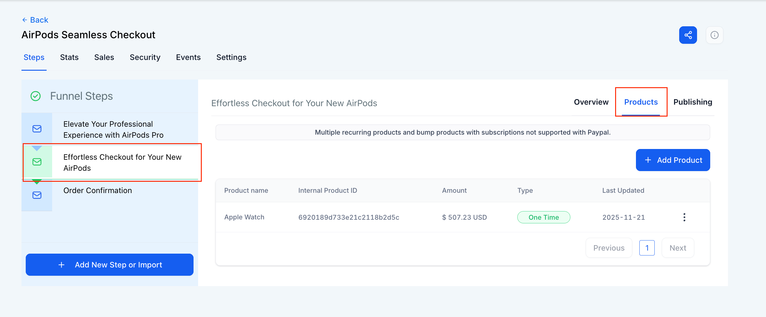 Select the upsell product or variant, set price, quantity rules, and any discount.