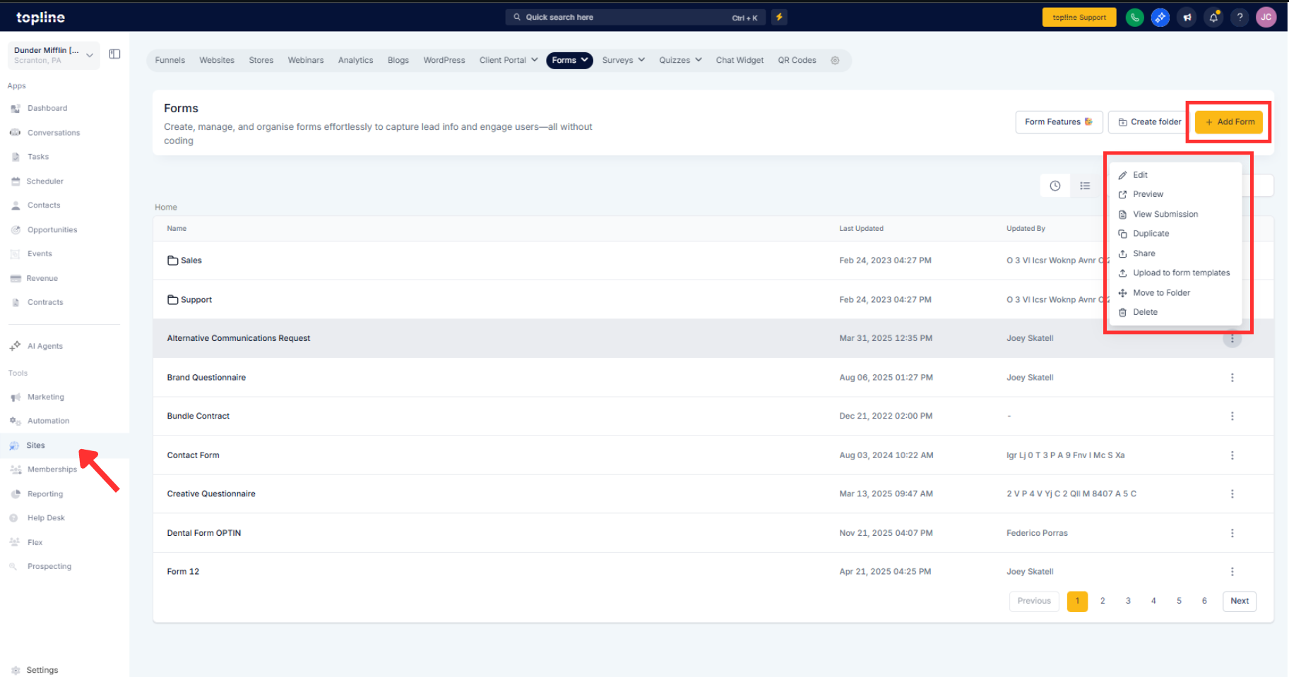 Open Forms or Surveys and select the form tied to a payment or product, or create a new one.