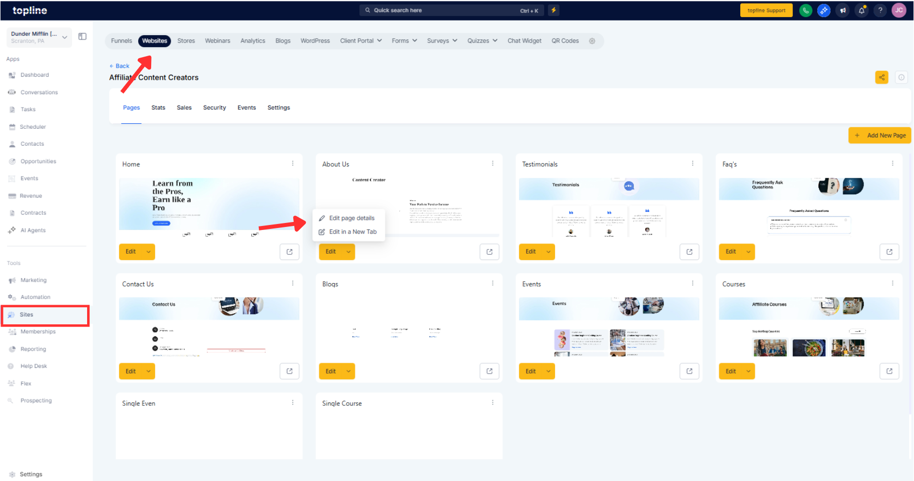 Test changes on a staging page before syncing to live pages