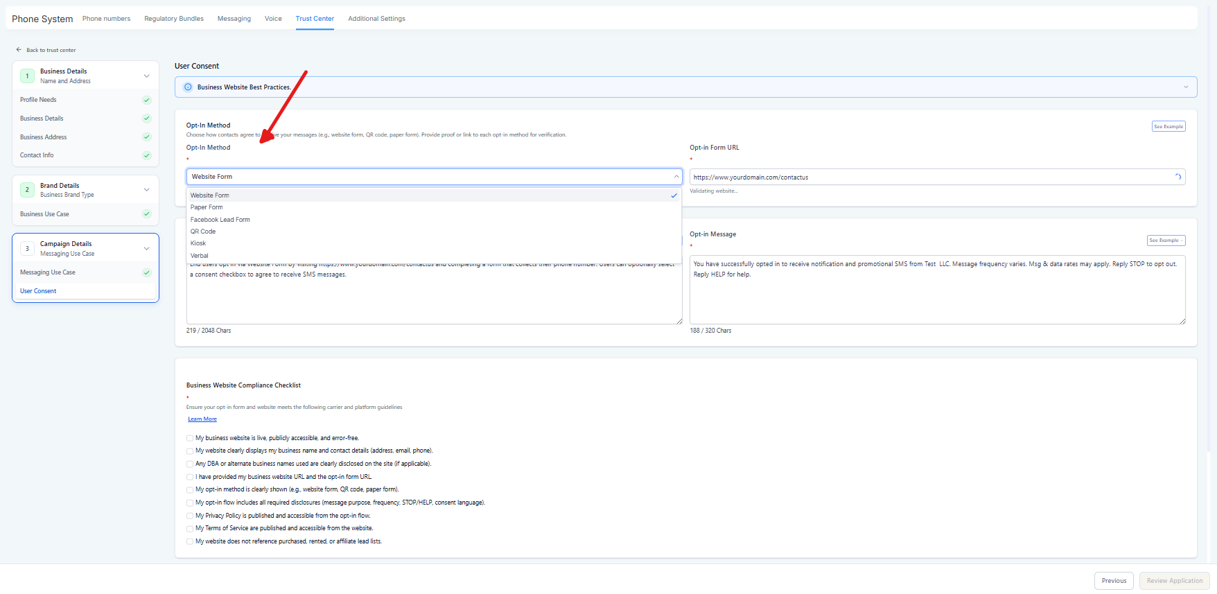 Campaign approval (how you collect consent + what messages you send)