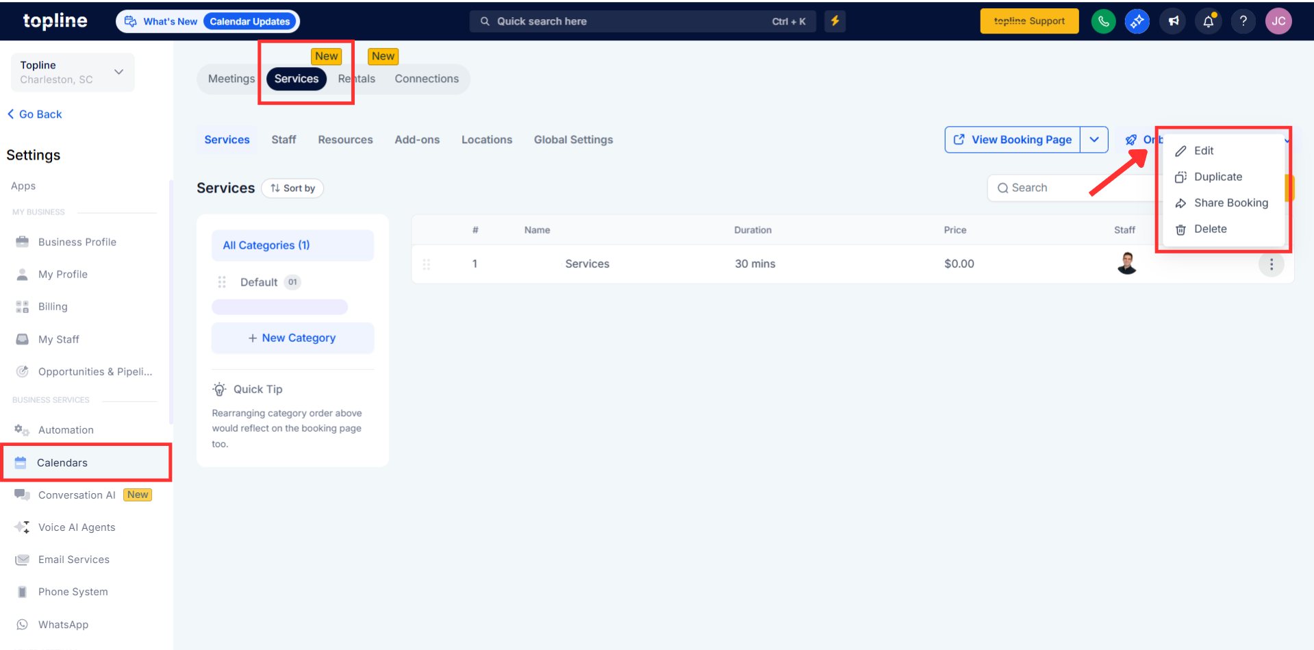 Navigate to your services or scheduling area. Choose the service you want to update.