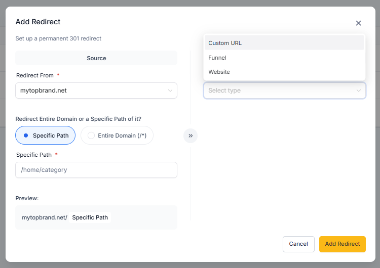 The URL redirect experience has been redesigned to improve clarity speed and navigation. Users can now create edit and manage redirects more efficiently with a streamlined layout and clearer options.