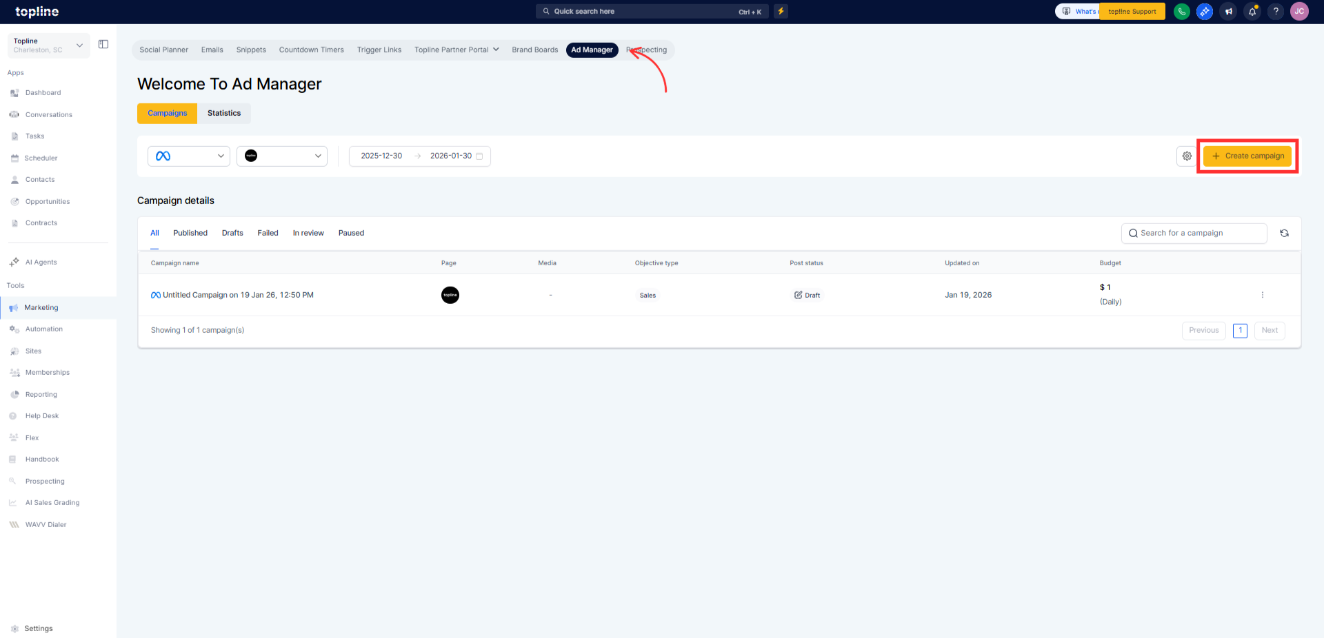 Navigate to your ad manager section. Select the option to create a new advertising campaign.
