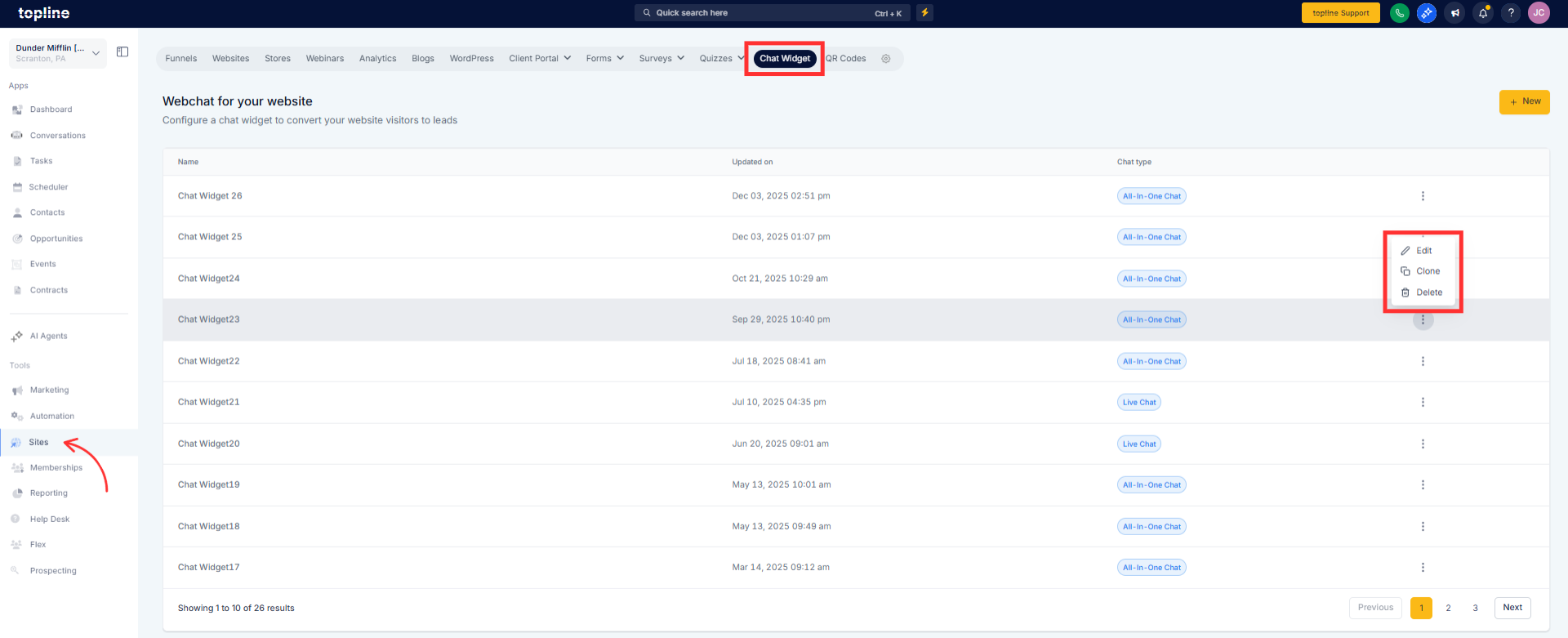Navigate to the chat widget configuration area.
