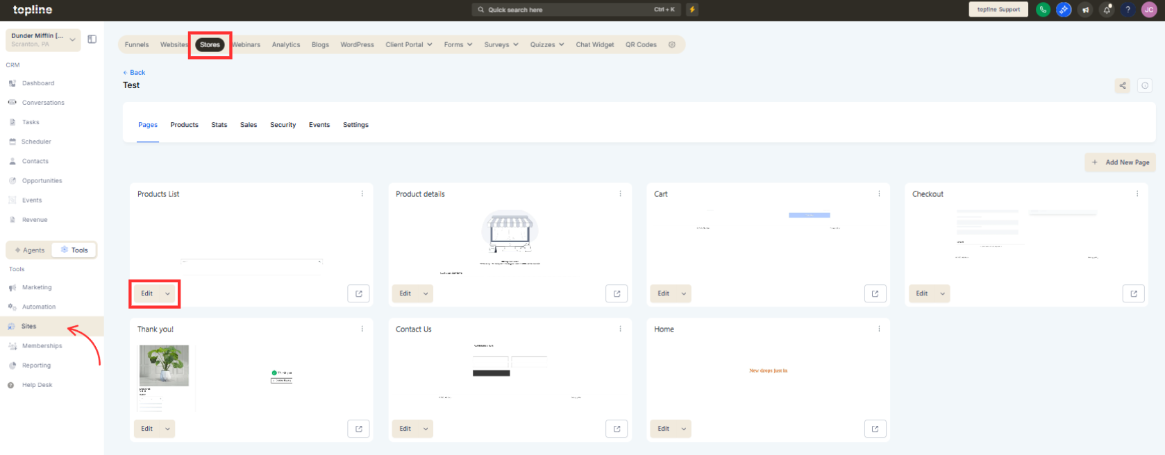 Navigate to the products or store management area.