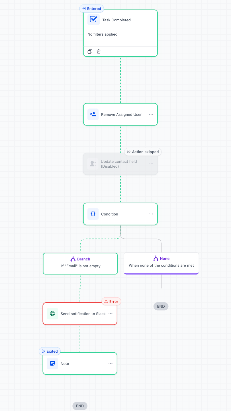 You can now clearly see the path a contact follows inside a workflow. Enhanced visual debugging highlights each step taken, making it easier to understand automation behavior, identify issues, and optimize workflow logic without guesswork.
