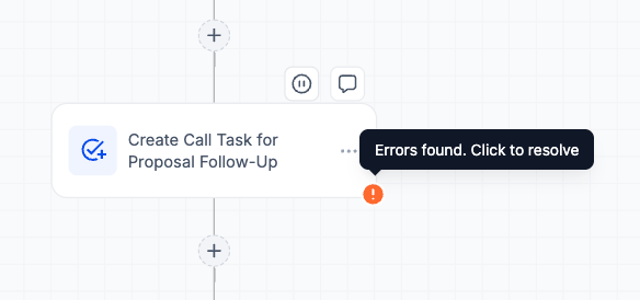 Look for visually marked steps that indicate configuration issues. Click on highlighted actions or triggers to view error details.