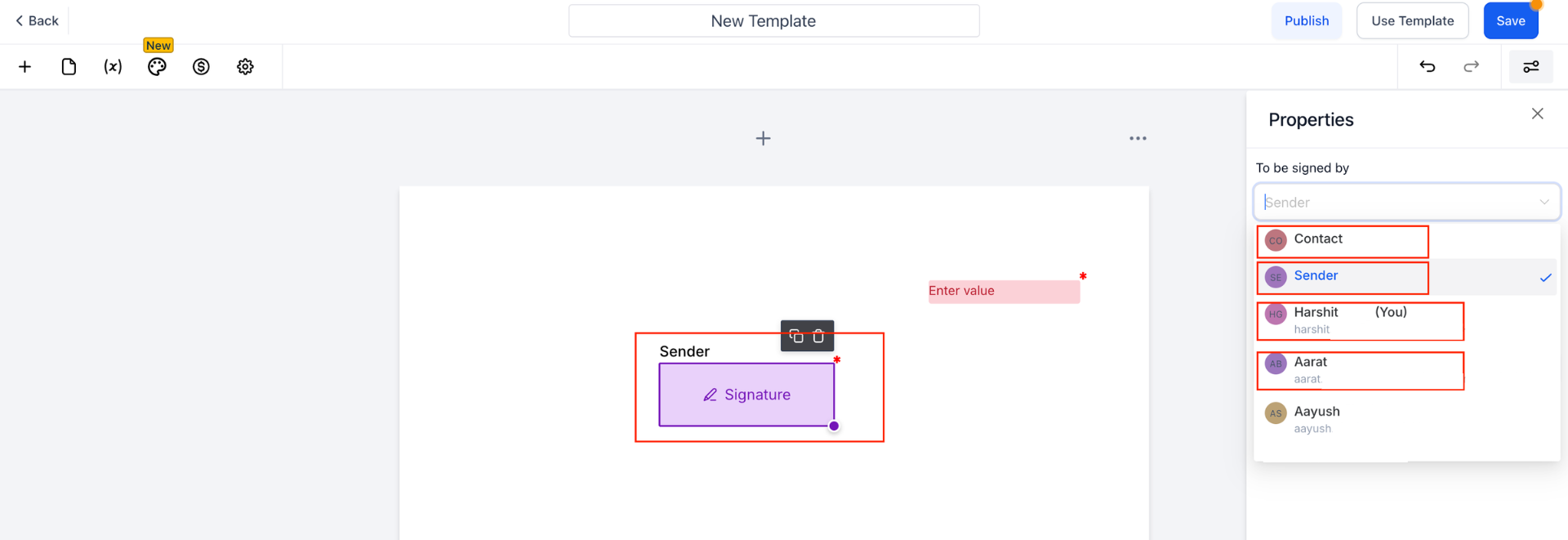 You can now predefine or select staff members inside the document and contract templates. This ensures the correct team member is associated with the document during sending or signing, reducing manual adjustments and improving operational efficiency.