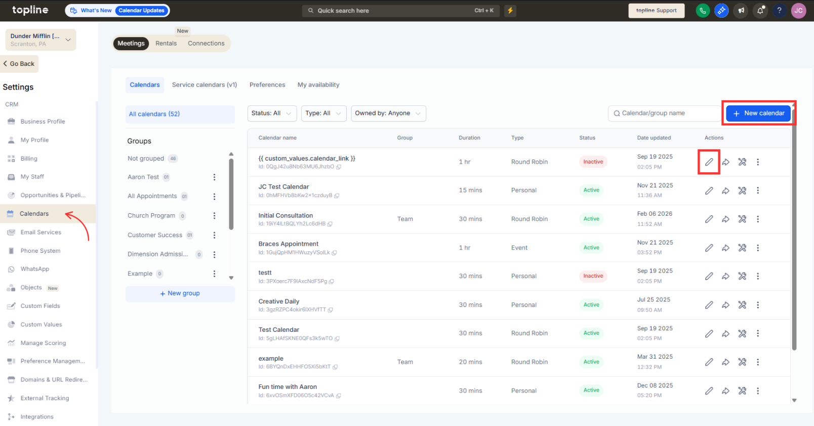 Navigate to your Calendar area. Select an existing service or create a new one.