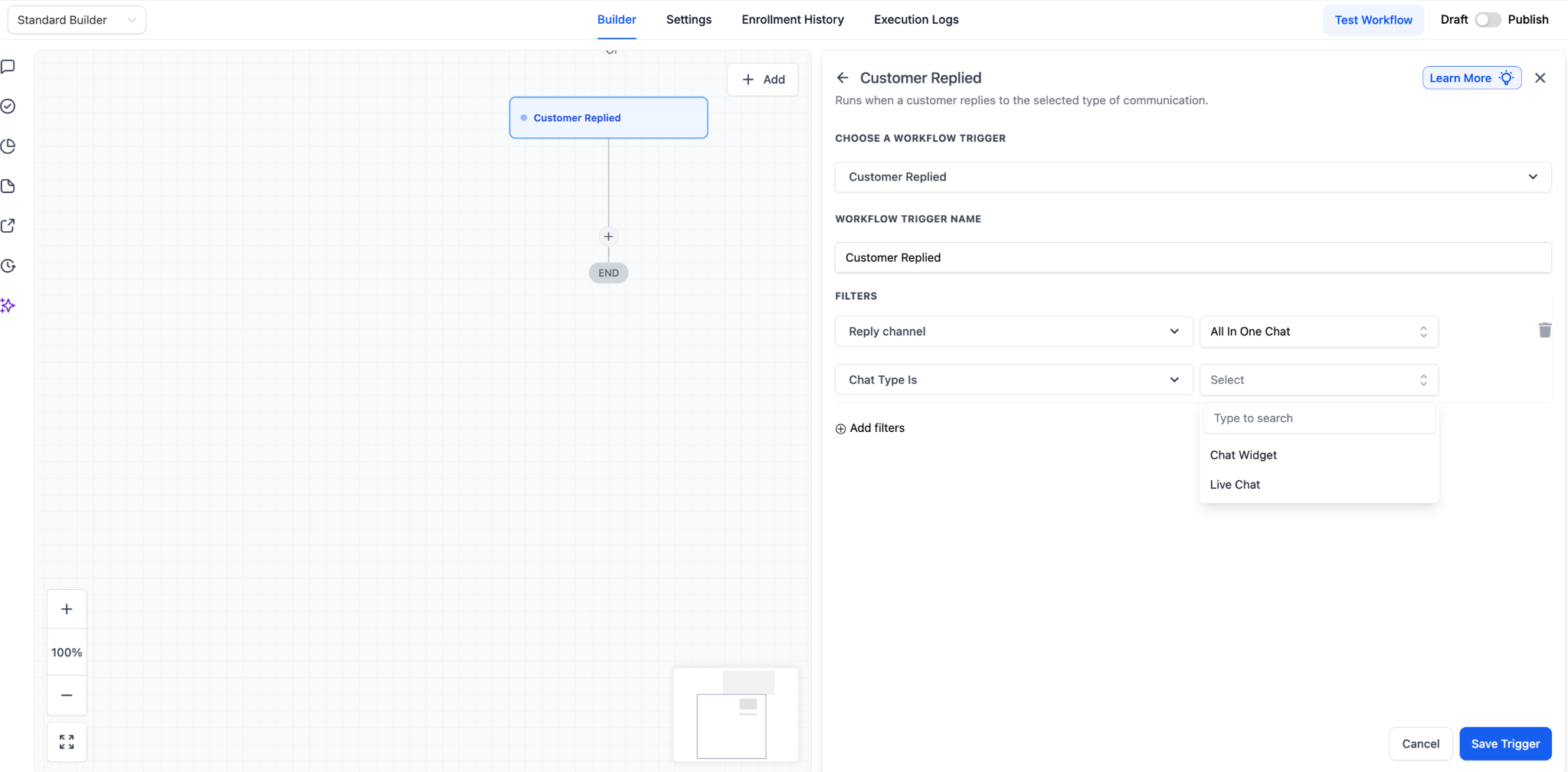 • Use the customer replied trigger for chat follow-ups