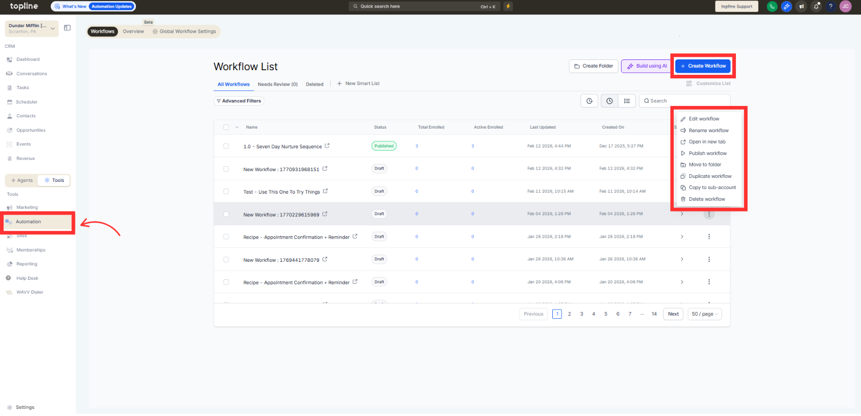 Navigate to your automation section and create or edit a workflow.