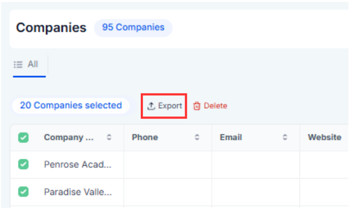 You can now export multiple company records at once instead of handling them individually. This improves efficiency when creating reports, sharing data with teams, or maintaining external backups of company information.