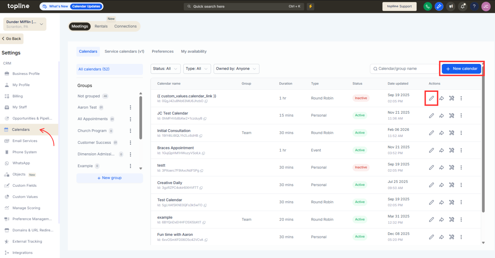 Navigate to the calendar or scheduling management section.