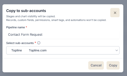 You can now copy pipelines from one account to another, saving time when setting up similar sales workflows. This ensures consistency across teams and reduces the need to rebuild pipeline structures manually.
