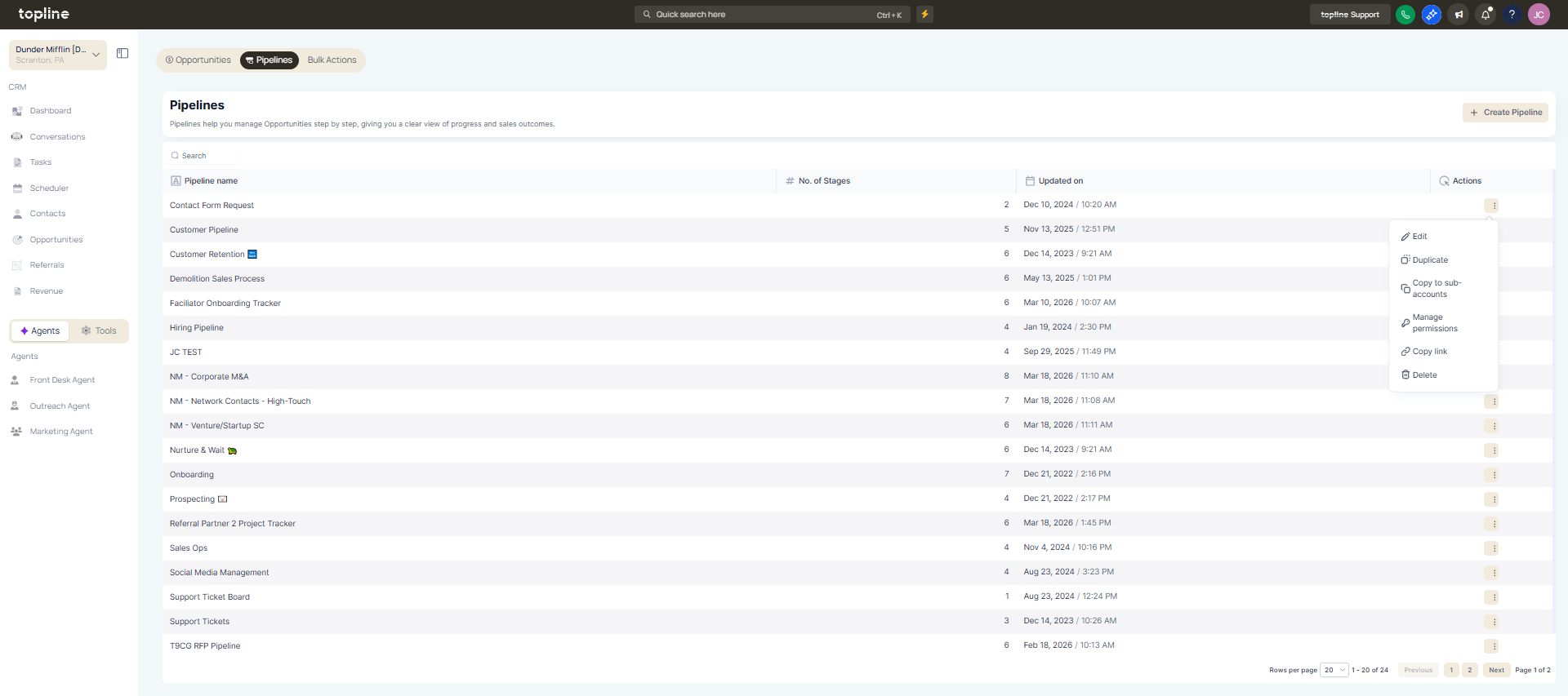 Navigate to the pipelines or opportunities area. Choose the pipeline you want to copy.