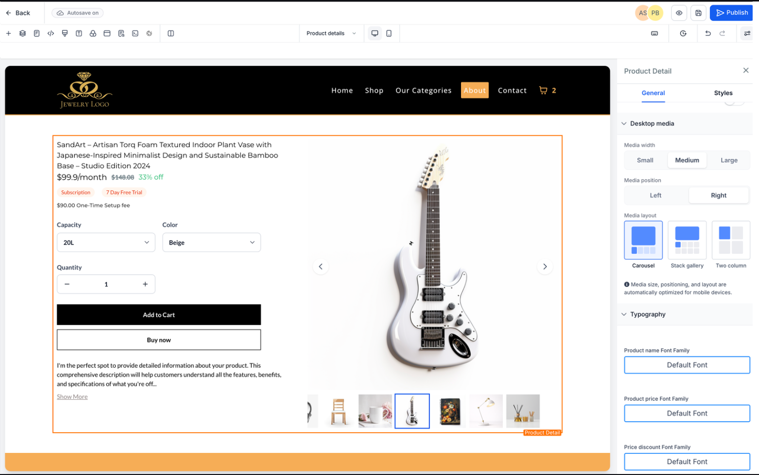 You can now customize how product detail pages appear on desktop by adjusting media size and layout structure. This gives greater flexibility in showcasing products, improving visual hierarchy, and enhancing the overall shopping experience.